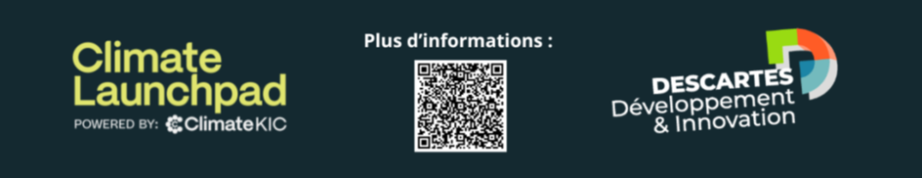 Présent dans plus de 50 pays, le ClimateLaunchpad est le plus grand concours international de pitchs dédié à l’innovation climatique. Ouvert à tous, il représente une opportunité unique pour se challenger, tester son idée et gagner en visibilité. Son ambition ? Libérer le potentiel des innovations technologiques propres pour lutter contre le changement climatique en accompagnant les projets en phase d’amorçage et en leur offrant une formation pour transformer leurs idées en succès. L’Incubateur Descartes est fier d’être le relais national français depuis 2018.
